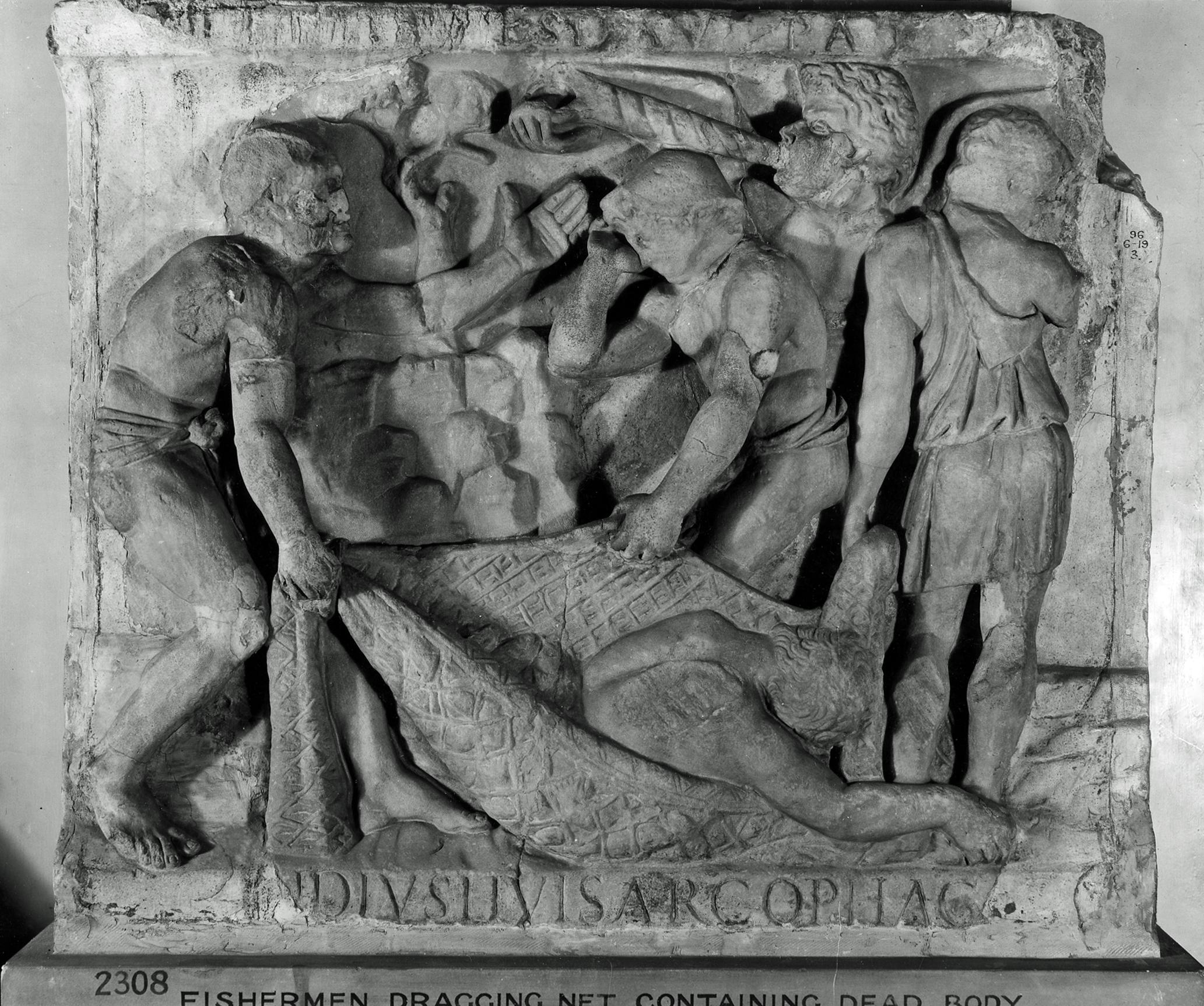 This world of vanishing bodies and devouring fish fits in with broader Roman conceptions of the sea as a mythical realm of impossibilities. Indeed, when I’ve ventured out of the BSR library and its excellent collection of catalogues, I’ve toured the many museums of Rome in search of marine motifs and even made it to the formerly seaside necropolis of Portus, known as Isola Sacra. Today, the ocean still holds a certain mystic allure: we are charmed by dolphin documentaries, fascinated by the bizarre and unsettling creatures of the deep sea, and our popular media is full of tales of pirates, mermaids, and more. There are the familiar Graeco-Roman myths of the sirens, Scylla and Charybdis, and the birth of Venus/Aphrodite, but, more generally, mythological and hybrid sea-creatures like nymphs, hippocampi, and sea-centaurs populated mosaics, frescoes, and reliefs in homes, baths, tombs, and sarcophagi. These sarcophagi in particular depict what is sometimes called a ‘marine thiasos’, a world of impossible, transforming, hybrid beasts and beautiful, eroticised nymphs playing among swirling seas. It is an image of pleasure and unreachability which speaks to (and masks) an anxiety about loss and death, about the transforming and decaying body within the coffin. In the broadest of terms, my research seeks to probe the fears and fantasies which fuel our relationship to death across time.