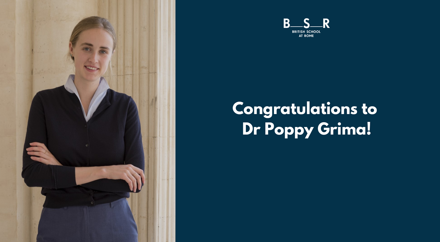 We are delighted to announce that Poppy Grima, the first doctoral student to undertake a Collaborative Doctoral Award with the British School at Rome, in partnership with Durham University, has successfully completed her PhD.